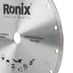 “صفحه سرامیک بر یکی از متعلقات ابزارآلات برشی است که در زمره متعلقات پرکاربرد قرار می گیرد. در تولید این صفحه باید از مواد باکیفیت استفاده شود زیرا این امر دقت قطع را بالا می برد و از پرش صفحه در زمان برش قطعه کارهای سخت جلوگیری می کند. همچنین صفحه سرامیک بر باید از سرعت چرخش بالایی برخوردار باشد تا بدین ترتیب از شکستن و لب پر شدن سرامیک و کاشی جلوگیری شود.صفحه سرامیک بُر 230 میلی متری رونیکس مدل RH-3533 از مواد اولیه باکیفیت و با فناوری های پیشرفته تولید شده که این مسأله قدرت برش این محصول را افزایش داده و طول عمر بالای آن را به همراه دارد. این قطعه برشی رونیکس جزو بهترین و کارآمد ترین متعلقات ابزارآلات برشی موجود در بازار است و کاربر را از نمونه های مشابه بی نیاز می کند.برای ایجاد برشی سریع و دقیق روی سرامیک باید صفحه برشی در اختیار داشت که ابعاد آن مطابق با استانداردهای جهانی تنظیم شده باشد.این صفحه سرامیک بر رونیکس دارای قطر 230 میلی متری، ارتفاع سگمنت 5 میلی متری و قطر سوراخ وسط 22.2 میلی متری است که همه این موارد، در کنار سرعت چرخشی بالغ بر 6600 دور در دقیقه این صفحه سرامیک بر را به عنوان محصولی نمونه به بازار ابزار معرفی کرده است.”