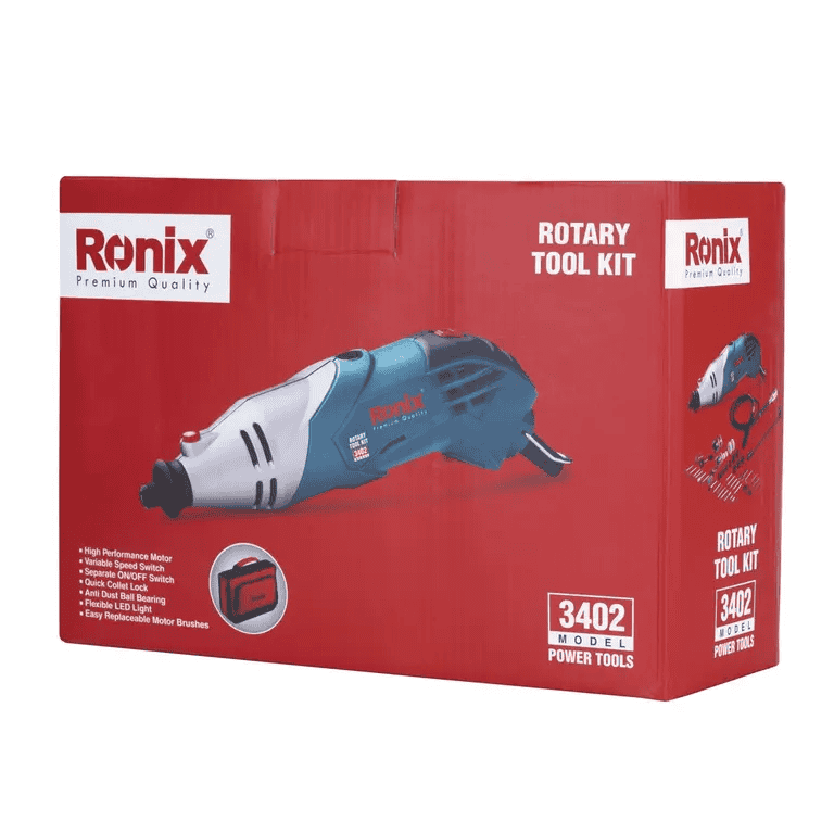 “فرز مینیاتوری 3402 رونیکس، ابزاری مناسب برای فرزکاری، سنبادهزنی، پولیش و حکاکی است. این ابزار در کارهای هنری و ظریف کاربرد دارد. این فرز کوچک، مجهز به موتور 170 واتی است و با دیمر آنالوگ بالای بدنه میتوانید سرعت آن را در محدوده 8000 تا 35000 دور در دقیقه تنظیم کنید.nnاین دستگاه مجهز به 125 عدد متعلقات کاربردی بوده که با توجه به نیاز خود میتوانید از آنها استفاده کنید. برخورداری از کلید قفلکن شفت در این ابزار باعث شده تا بتوانید به راحتی و با سرعت بیشتری متعلقات این ابزار برقی را تعویض کنید. این فرز مینیاتوری به همراه متعلقات کاربردی آن در یک کیف برزنتی بستهبندی شده است. به این ترتیب، علاوهبر محافظت از ابزار و متعلقات آن، راحتتر میتوانید این مجموعه را جابهجا کنید. بدنه دستگاه به دقت مهندسی، طراحی و تولید شده است تا بیشترین میزان قدرت و کاربری در کوچکترین حجم ممکن جا گرفته و موجب سهولت کاربری شود.nnدر بخش توضیحات محصول، با مشخصات فرز برقی مینیاتوری آنالوگ رونیکس مدل 3402 بیشتر آشنا شوید.”